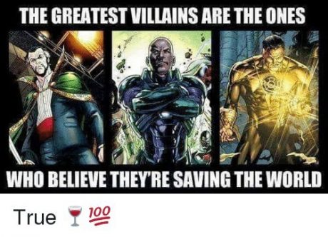 Quite the irony, isn’t it? But I mean it: it’s the people who believe they should save the world who are its greatest enemies. I believe that no one carries out wrongdoing like a TV or fictional stock villain, one who rubs his hands together and celebrates aloud the evilness of his deeds. Real people carry out things believing they are doing good, even if they are stabbing somebody or harassing them. When Hitler went on an extermination spree of the Jews, he never said, “muwahahaha, my evil plan is working.” He thought he was doing good. Same with Pol Pot and his cadre, who believed that intellectuals were the cause of Cambodia’s problems and killing them was the solution. As the saying goes, the greatest villainy goes around pretending to be the heroics.